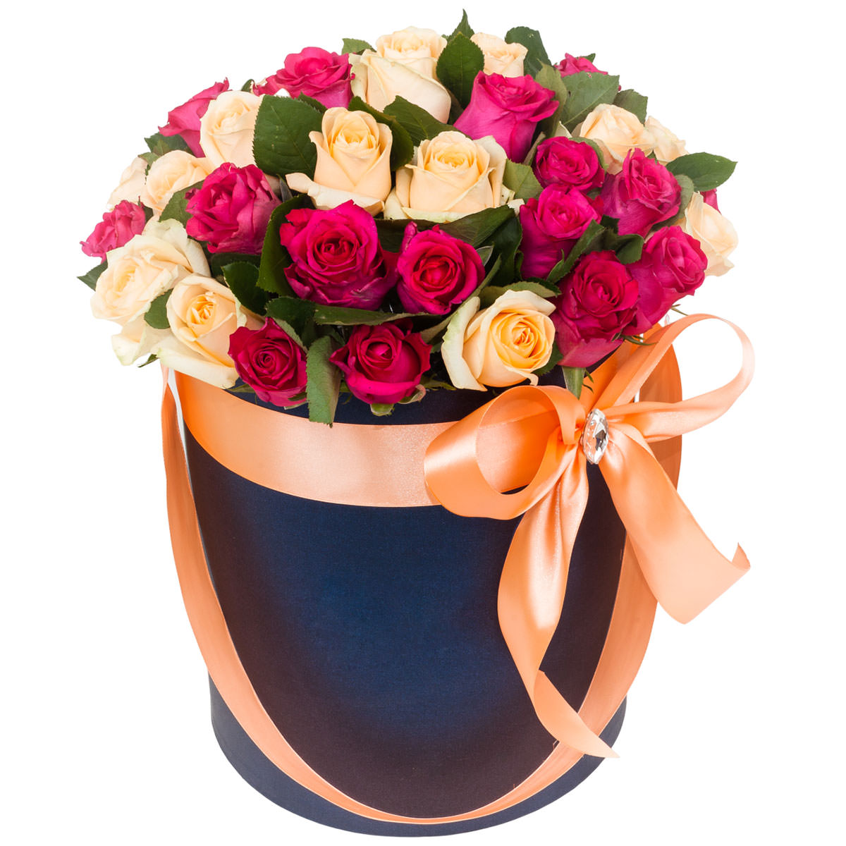 Роза одноголовая розовая и кремовая. Упаковка (шляпная коробка, квадратный бокс, коробка сердце, оазис)